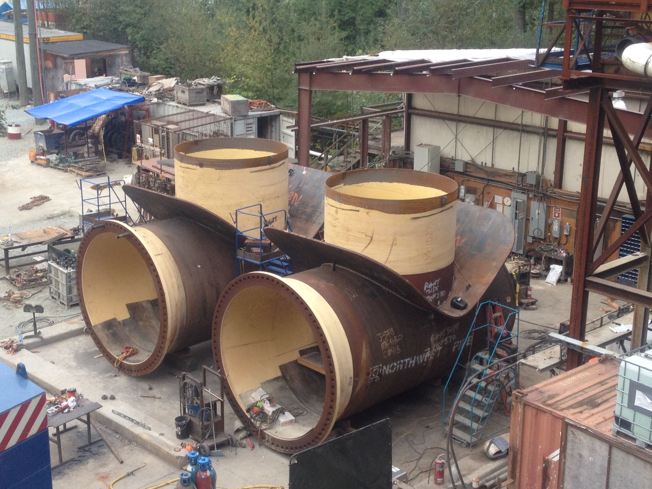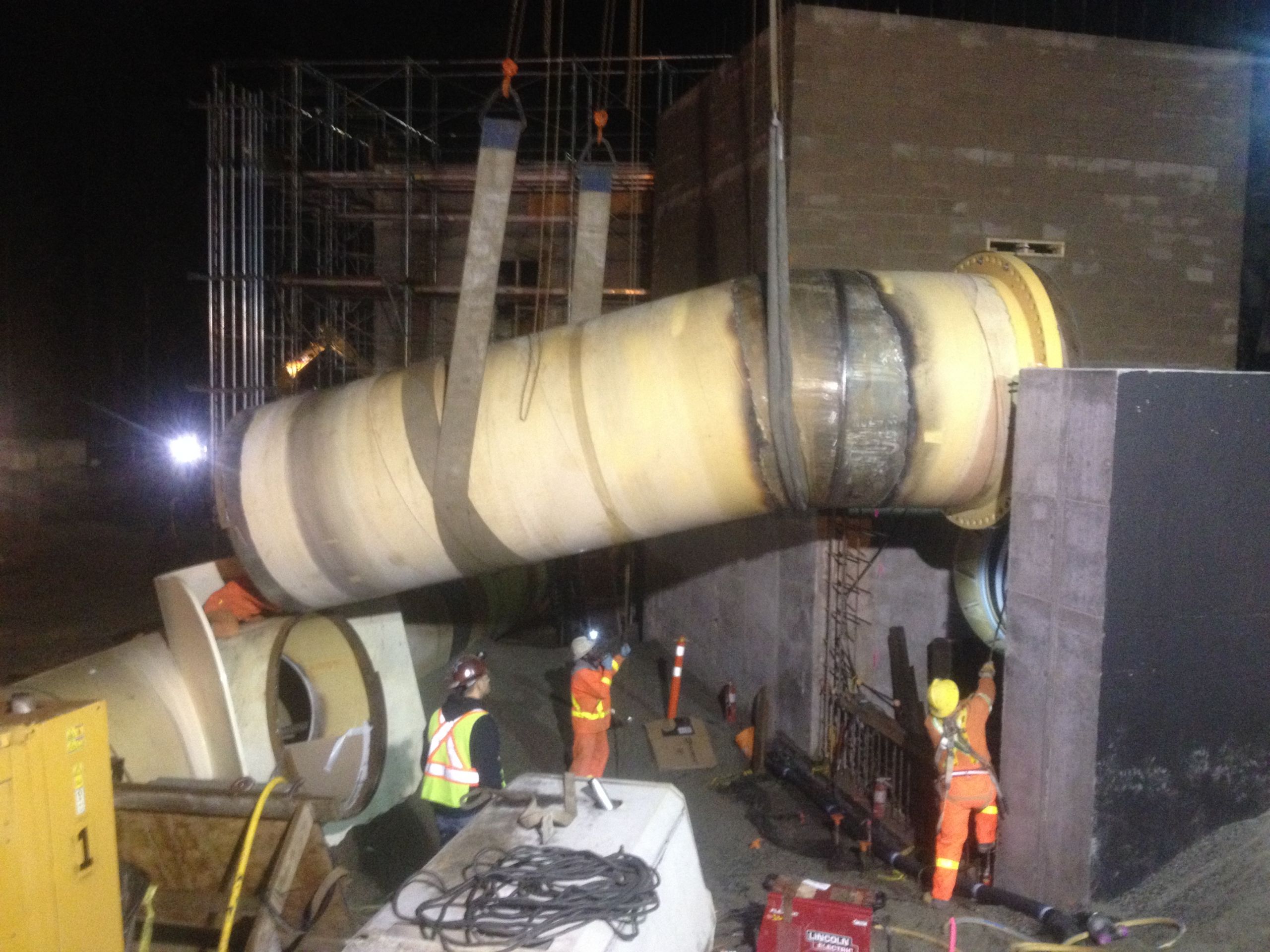 2010 Dean’s entered into a $6.5 million dollar contract with Frontier Kemper on the Twin Tunnels Completion Project in Vancouver, B.C. for Metro Vancouver. This job had over 3000 ft of shafts and over 15,000 feet of tunnel that is steel lined. The 10 ft diameter pipe ranged in thicknesses from ½” to 2” with 9 different field assembled Tees and crosses.